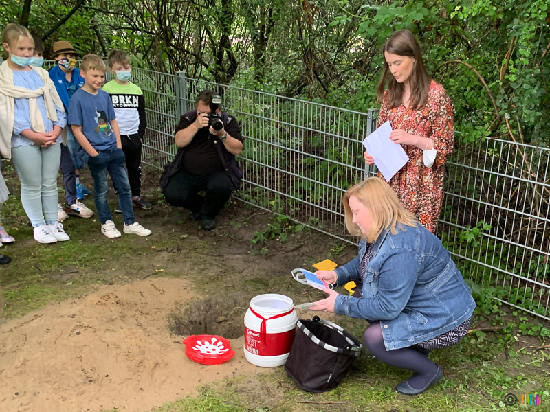 02.07.2021 - Verabschiedung 4. Klässler. Am letzten Schultag des Schuljahres flatterten die Taschentücher - die Schülerinnen und Schüler der 4. Klasse verbrachten ihren letzten Schultag an ihrer Selmi und verabschiedeten sich von ihr. Sie vergruben eine Zeitkapsel, in der sie Notizen, Gegenstände und Bilder aus der besonderen Zeit der Pandemie sammelten.