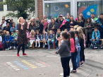 Die 2a lud dann die Neuankömmlinge zu einem gemeinsamen Tanz ein, ehe es wenig später für die Bären, Tiger und Frösche in ihre neuen Klassenräume zur ersten Schulstunde ging.Währenddessen wurden Eltern, Großeltern und weitere Familienangehörige der Erstklässler vom Förderverein sowie von Eltern der 2. Klasse zu Kaffee und Kuchen eingeladen. Vielen herzlichen Dank an dieser Stelle für die köstliche Bewirtung.
