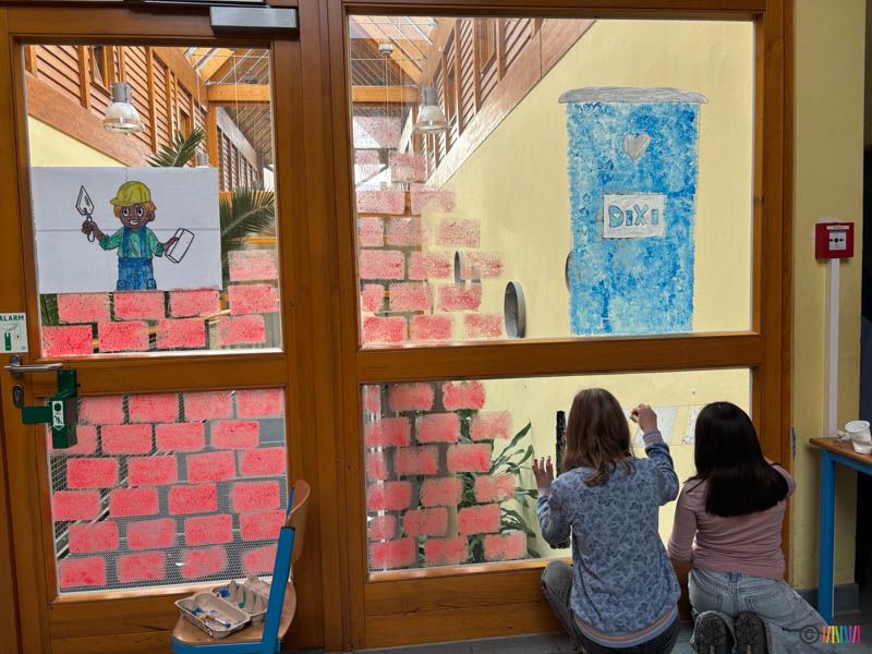 Mit viel Farbe, Fantasie und Teamgeist verwandelten die Schülerinnen und Schüler, gemeinsam mit zahlreichen Eltern und Großeltern die Fenster in farbenfrohe Kunstwerke. Ob Bagger, Bauhelme, Kräne oder Traumhäuser, die Ergebnisse zeichen eindrucksvoll, wie vielfältig und ideenreich unsere Schulgemeinschaft ist.